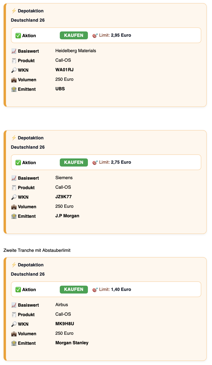 Wir haben am Montag den Rücksetzer im DAX gekauft. Unsere Depotaktionen sehen Sie unten beispielhaft. Testen Sie unsere erfolgreichen Depots via feingoldresearch.de
