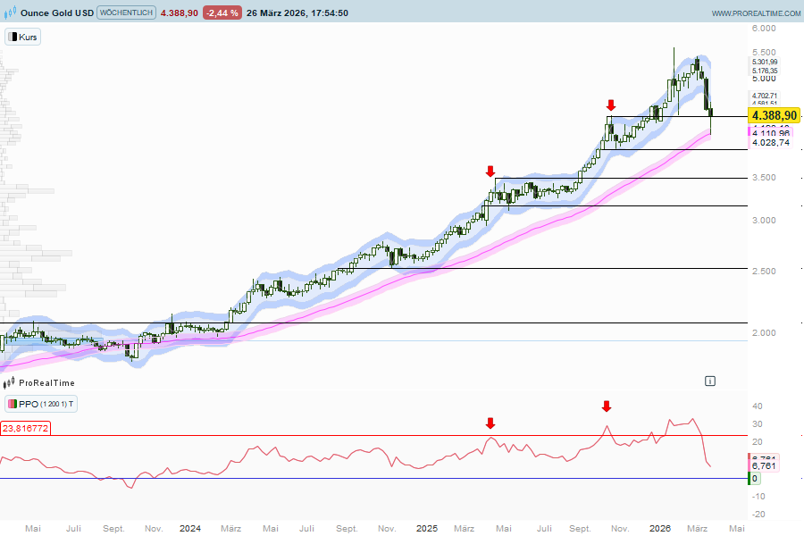 Franz-Georg hatte schon im Januar auf die historischen Abverkäufe bei Silber hingewiesen. Tatsächlich hat sich das Muster wiederholt. Die Volatilität war enorm. Zwar könnte sich Silber nun ebenfalls mit Gold erholen, aber Gold bleibt vorerst unser Favorit. In den vergangenen Wochen haben Notenbanken wie Türkei und Polen ihre Reserven reduziert um die eigene Währung gegen den starken Dollar zu stützen. Sollte diese Bewegung auslaufen, könnte sich Gold nachhaltig erholen. Auch technisch spannend: Gold hat die 200-Tage-Linie mustergültig getestet.